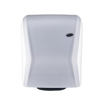 Berührungsloser Gel-Desinfektionsspender mit LED-Füllstandanzeige, Reservetank und einstellbarer Abgabemenge. Deckelöffnung beidseitig möglich, versperrbar, Gehäuase aus antistatischem, schlagfestem Kunststoff. Einfach und sichere Befüllung des Spenders dank innovativer vaccumBAG-Führung. Geeignet für septDES GEL Hagleitner. Grösse HBT: 25.3 x 13.1 x 12.6 cm