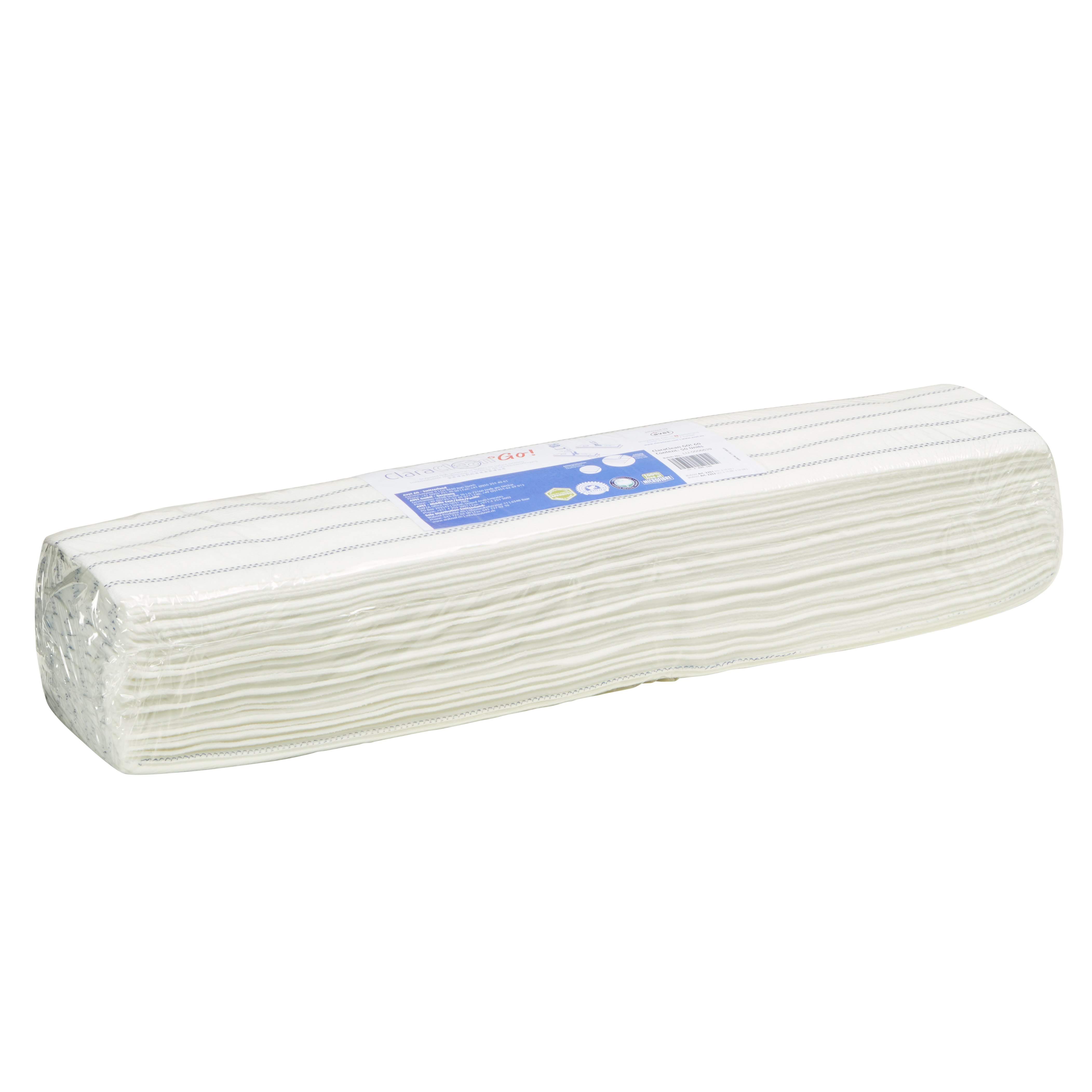 Blaues, mit alkalischem ClaraClean Tensid beladenes Einweg-Bodenreinigungstuch. Breite 60 cm. ClaraClean Go! sind trockene, beladene Hochleistungstextilien für die Oberflächenreinigung im Einweg-System. Durch die Befeuchtung mit purem Wasser werden die Reinigungstenside aktiviert und können definiert abgegeben werden. Beutel à 50 Stück Karton à 8 Beutel