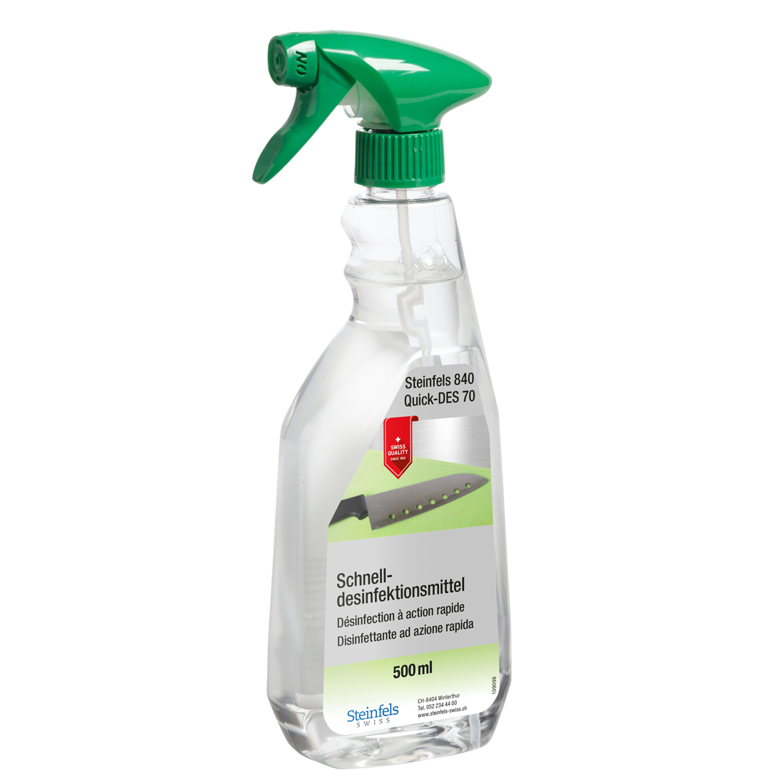 Schnelldesinfektionsmittel für die Desinfektion von Arbeitsflächen und Geräten. Muss nicht nachgespült werden. Wirksubstanz: Ethanol.