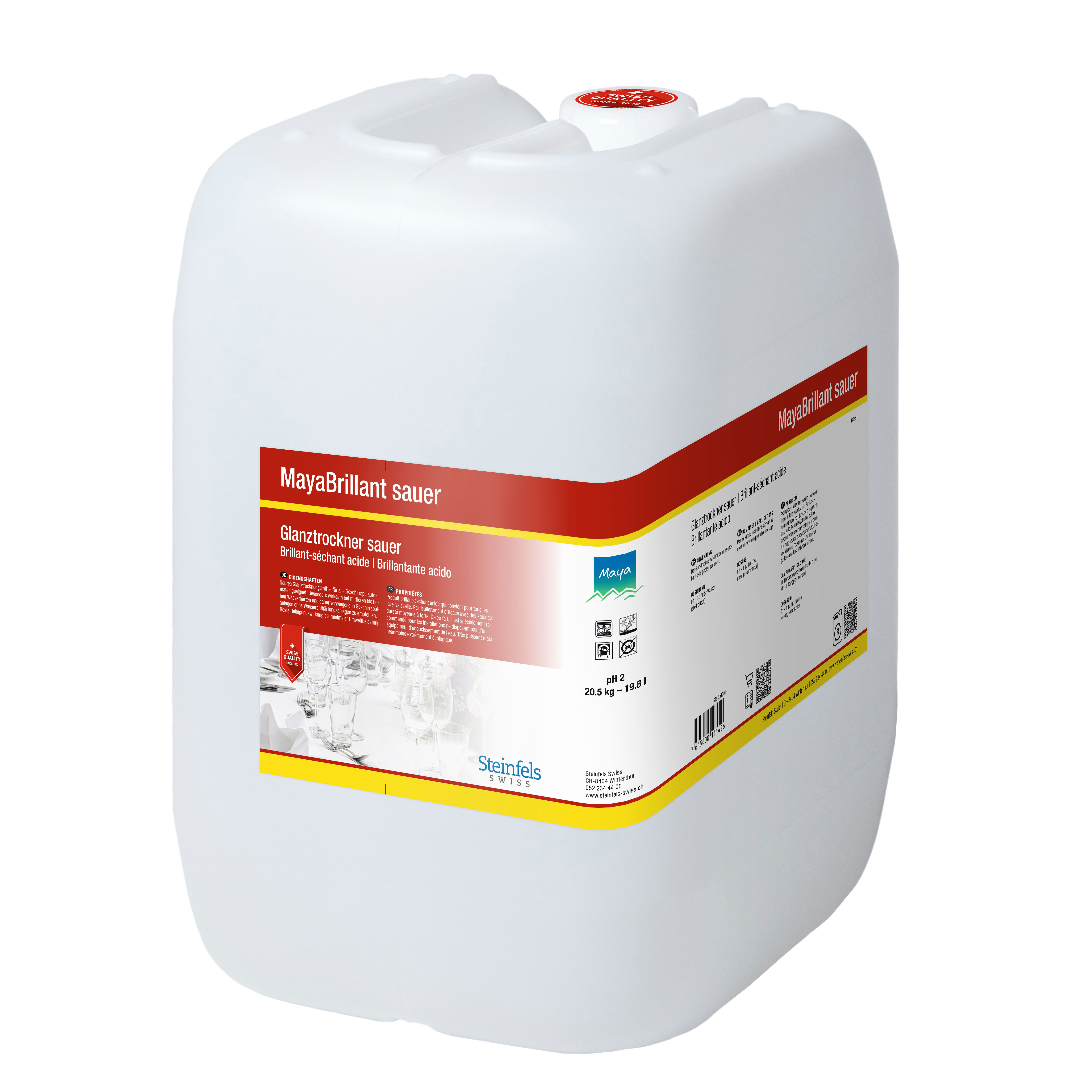 Saures Glanztrocknerkonzentrat, für hartes Wasser, schaumgebremst. Für tropfen- und fleckenfreies Geschirr. Besonders umweltfreundlich