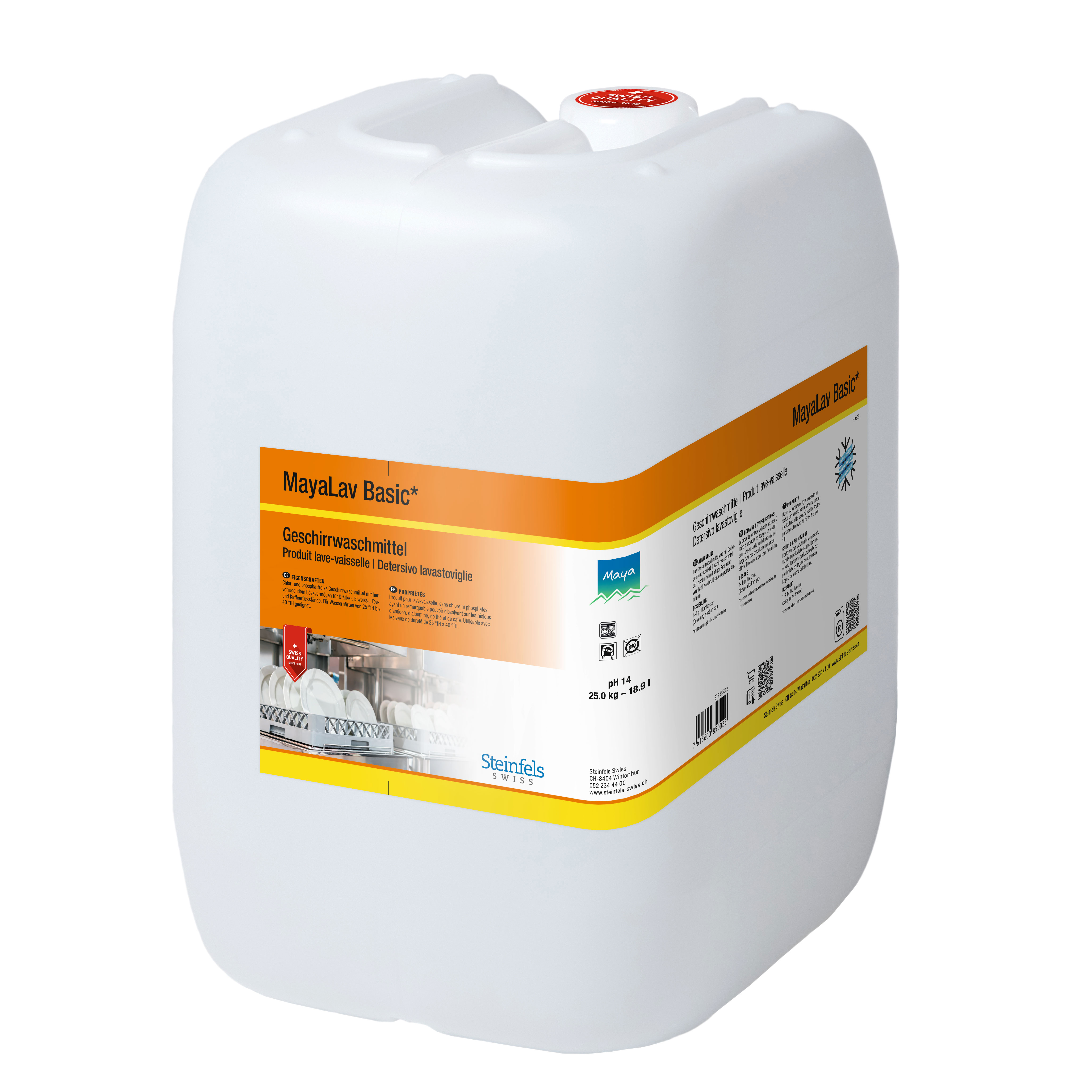 Chlor- und phosphatfreies Universal-Geschirrwaschmittelkonzentrat für Wasserhärten bis 35 °fH. Ist nicht geeignet für Aluminium. Besonders umweltfreundlich