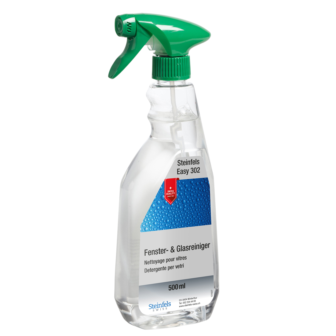 Gebrauchsfertiger Scheibenreiniger mit hohem Schmutzlösevermögen für sämtliche Arten von Verglasungen. Flasche aus 100% Recycling-PET