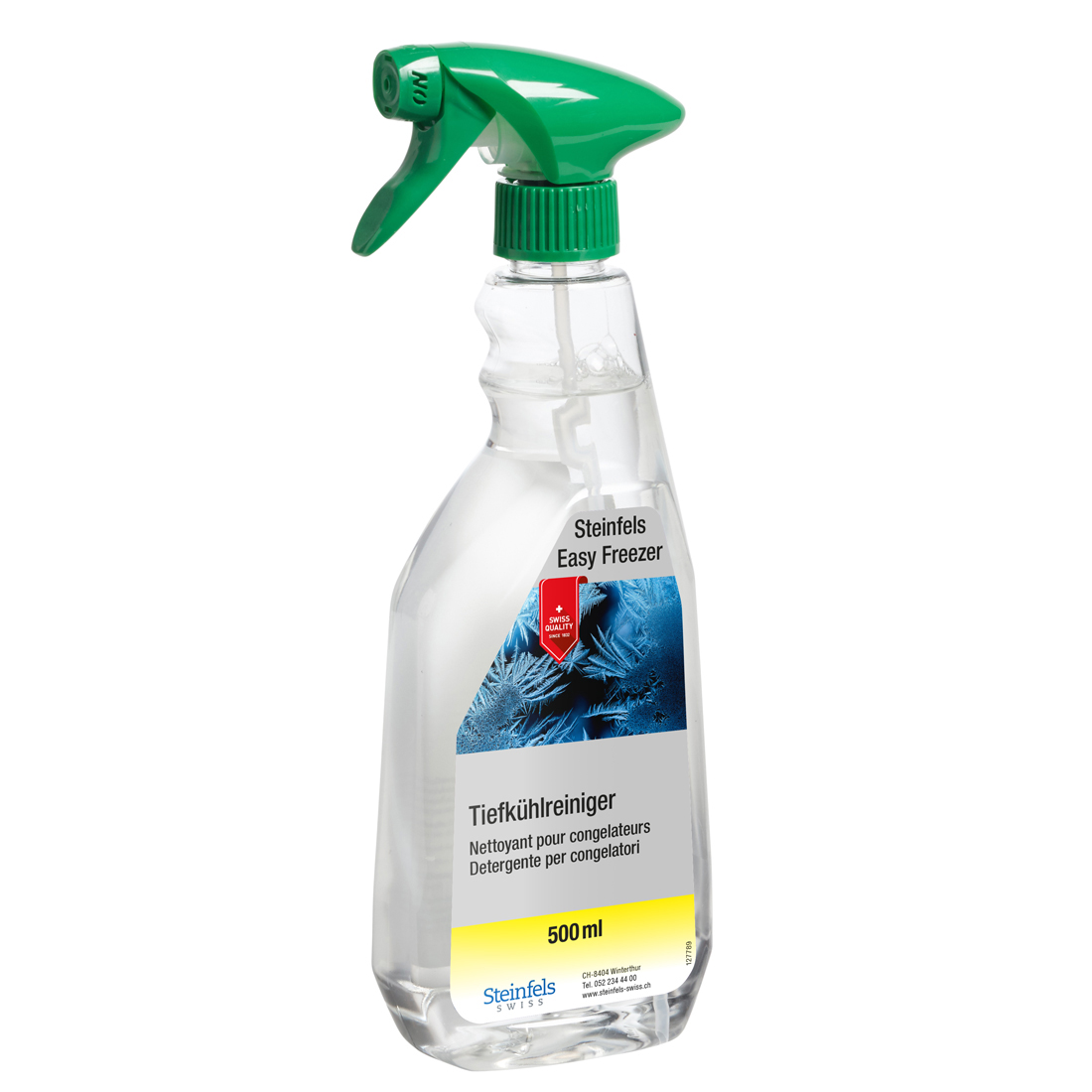 Wirksames Reinigungsmittel für Tiefkühl- anlagen, Tiefkühlzellen und Kühlräume bis -30ºC. Wird unver- dünnt angewendet, ohne dass zuerst abgetaut werden muss. Verträglich auf allen feuchtigkeitsbeständigen Materialien und ist ökologisch neutral eingestellt. Sofort und unverdünnt einsetzbar. Flasche aus 100% Recycling-PET