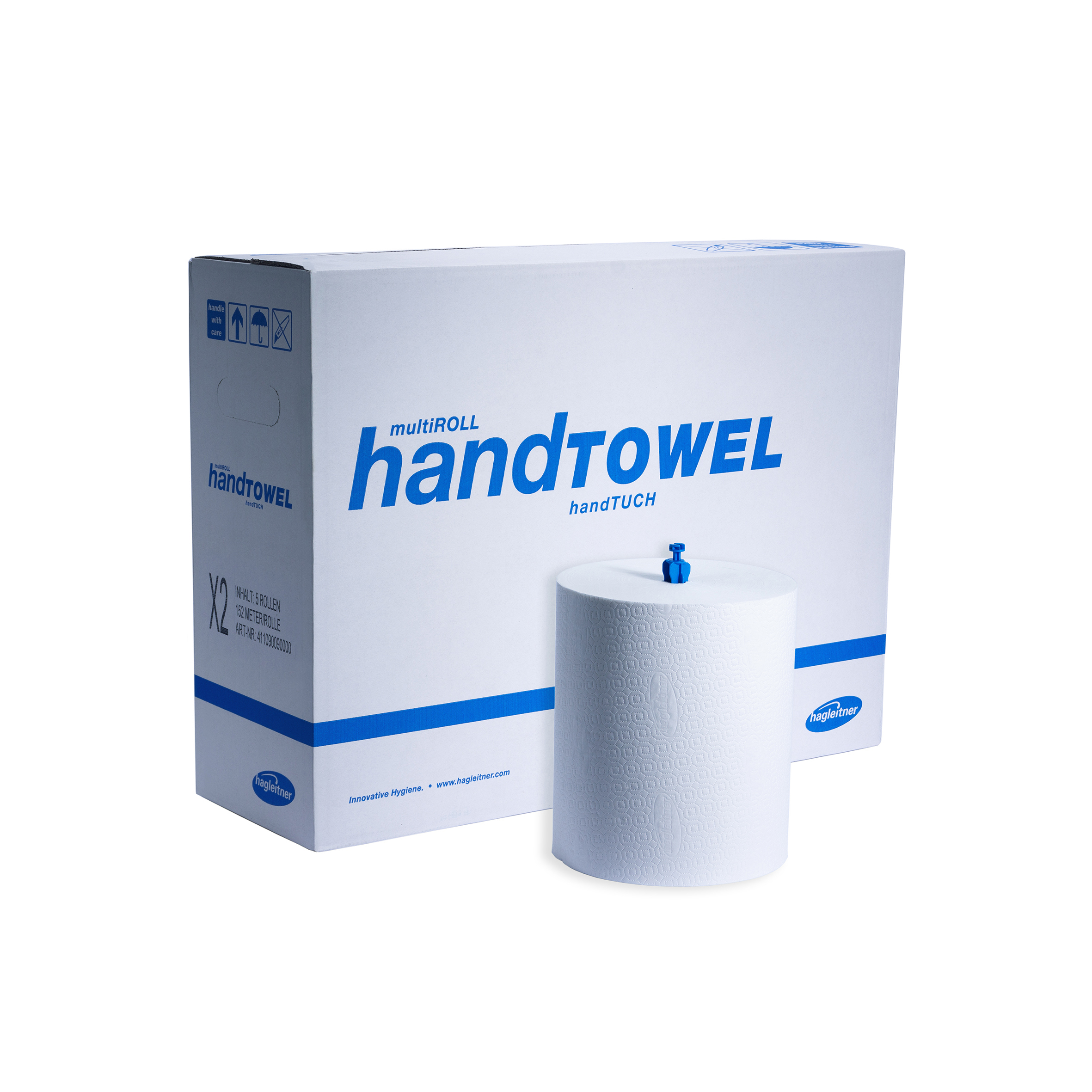 Nachfüllung für XIBU sense/touchTOWEL Spender und XIBU inoxTOWEL. Reinweiße Qualität, 2-lagig, verleimt und nassreißfest. 152lfm pro Rolle. Ideal für alle Anwendungen. Gewicht: 8,5 kg pro Karton.